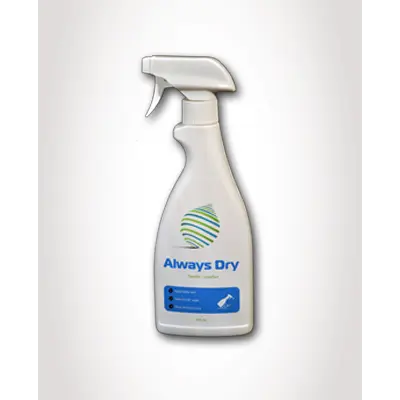 Το Always Dry είναι ένα επαναστατικό σπρέυ απώθησης υγρών, νερού, λαδιού και λεκέδων που προστατεύει είδη ένδυσης, υπόδησης, αξεσουάρ μόδας, δερμάτινα (συμπεριλαμβανομένων των Suede), χαλί, ταπετσαρία και το εσωτερικό των αυτοκινήτων.